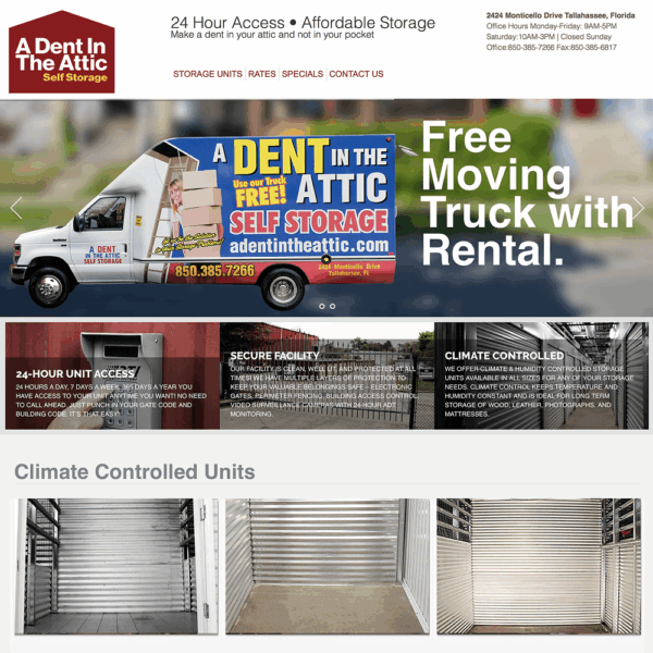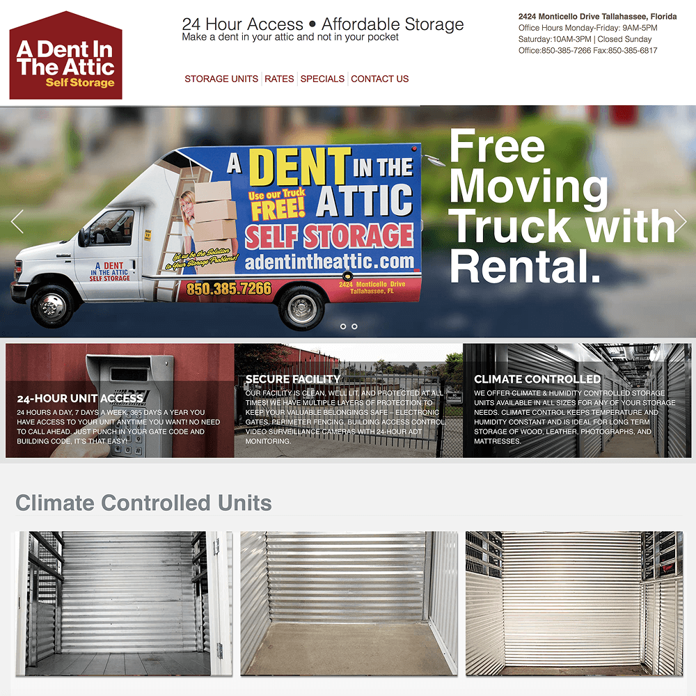 A local storage place needed to show how much stuff their units would hold so we build a custom tile to show how much each size unit would hold. Total custom website solution website to meet their needs.
