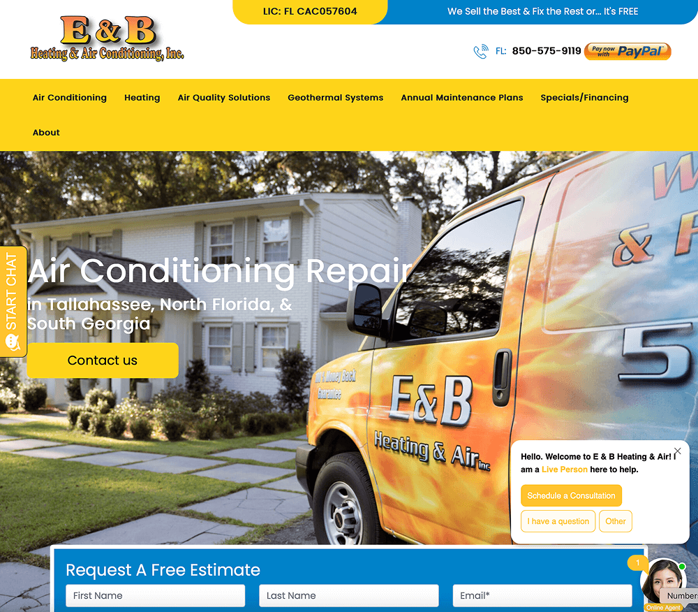 E&B Heating & Air needed a refreshed website that had a payment feature for their clients to pay electronically. We customized a new and re-freshed website and setup a PayPal solution for their clients. We also added a chat operator to do customer intake 24 hours, 7 days a week.